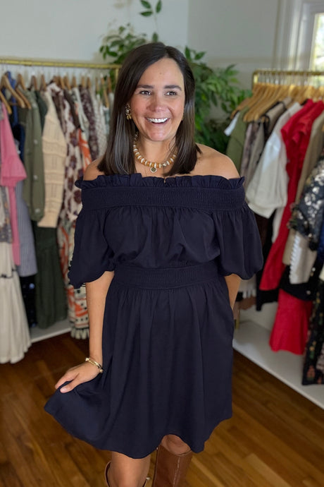 Jacquard Puff Sleeve Mini Dress