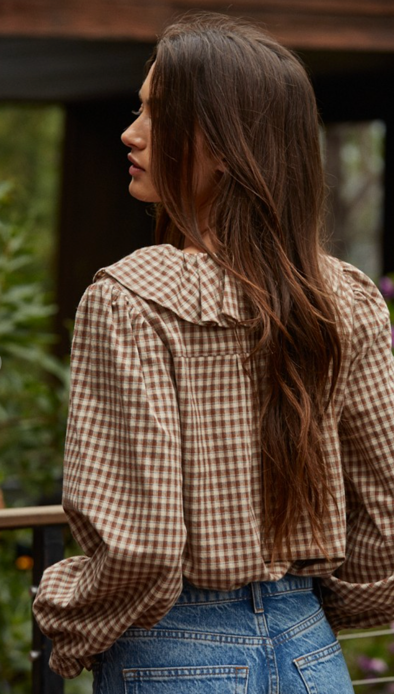 • Load image into Gallery viewer, Gingham Ruffle Blouse
